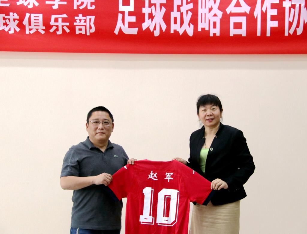 之后席海龙与张新宇代表双方签署了合作协议,并由席海龙向长安竞技足球俱乐部授予教学实践基地牌匾。