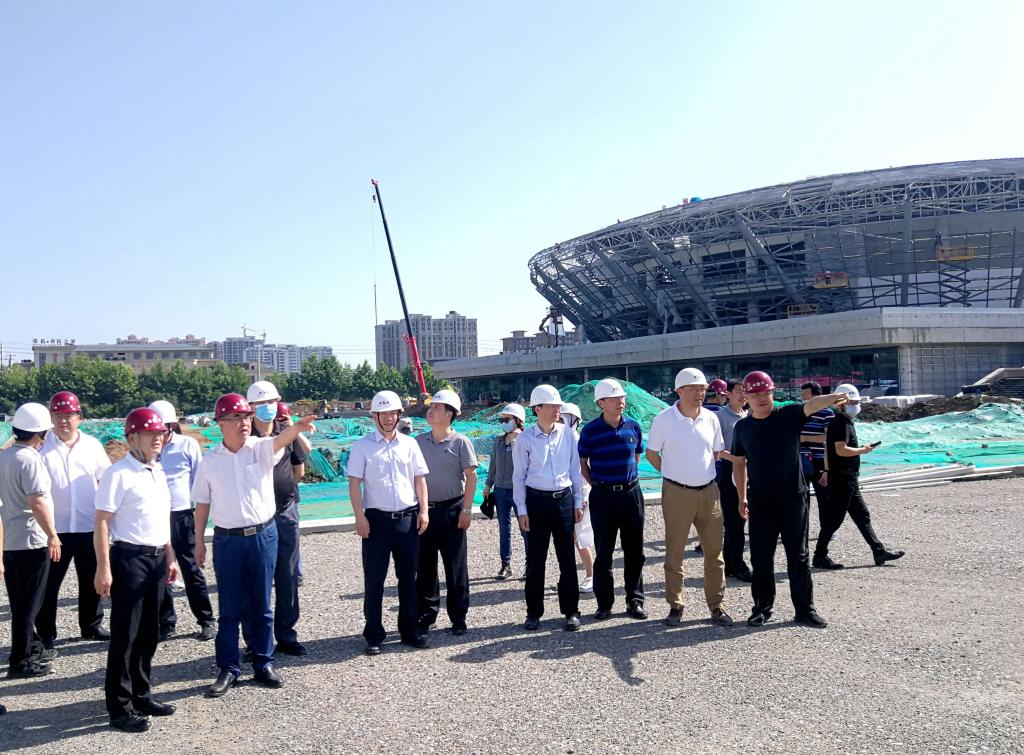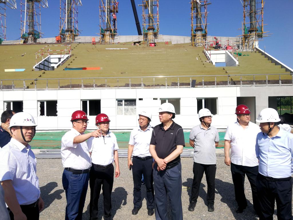 在建设现场,李富生向王二虎一行介绍了“一馆四场”项目的基本情况,并就开工以来的重点施工任务完成情况进行了汇报。
