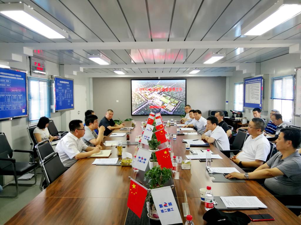 朱元利(右三)陪同邹军(右二)听取工程进展汇报
