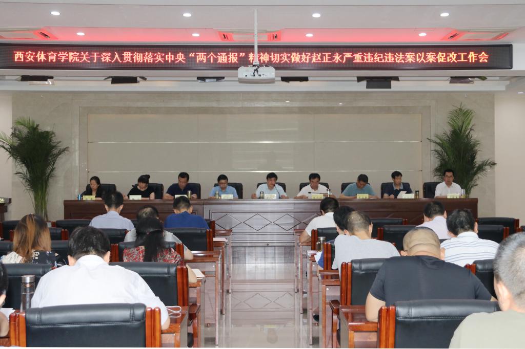 党委副书记、纪委书记、监察专员赵军对《中共西安体育学院委员会关于深入贯彻落实中央“两个通报”精神 切实做好赵正永严重违纪违法案以案促改工作的实施方案》做了说明,介绍了方案的起草背景、过程与原则和6个方面的基本框架、55项主要内容。她指出,制定我校《实施方案》对于深入学习贯彻习近平总书记来陕考察重要讲话精神,深刻领会党中央决策部署和省委工作安排,修复净化政治生态,一体推进不能腐、不敢腐、不想腐,推动我校改革稳定发展具有重要意义和操作价值。她表示,校纪检监察机构的同志将按照中、省纪委要求,在协助党委落实好主体责任的前提下,强化监督执纪问责,也希望全体同志提高政治站位,把握目标任务,确保以案促改扎实有效开展。