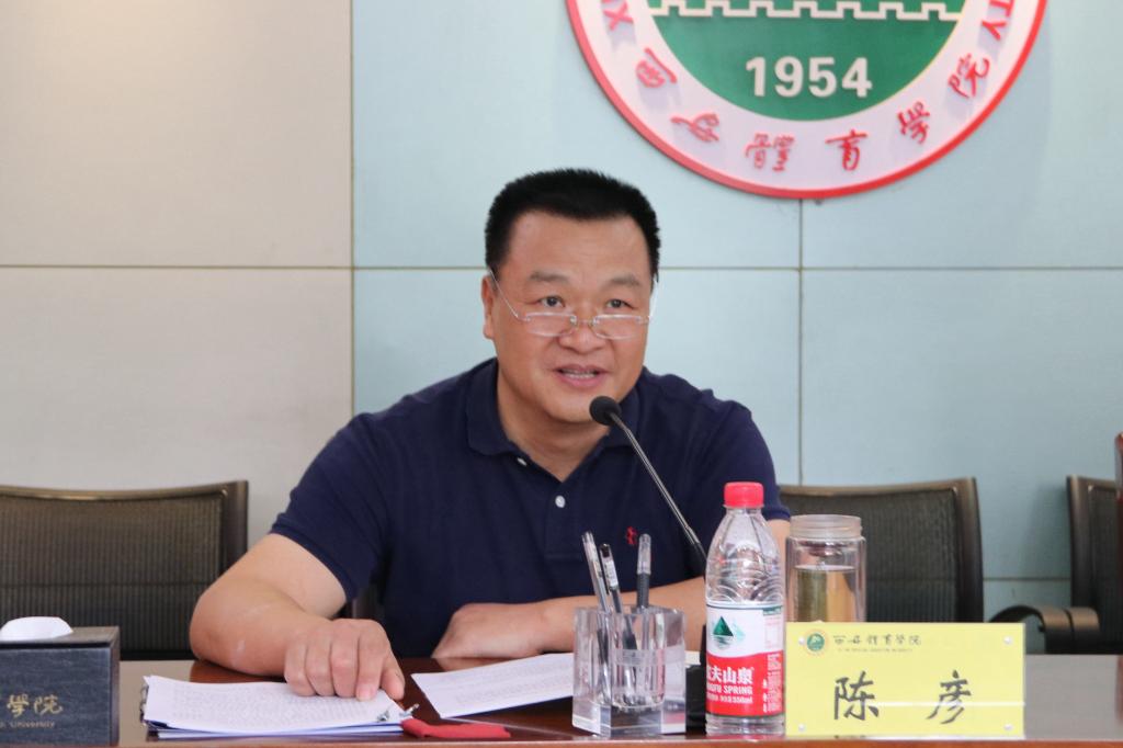 陈彦代表学校对留坝县领导一行的到来表示热烈欢迎。他向来宾介绍了西安体育学院的发展历史和办学条件;围绕合作交流主题,回顾了西安体育学院同渭南、志丹县开展校园足球合作模式的经验,阐述了我校开放办学融入经济社会方面的优势和不足。他表示,深入开展校地合作,对学校和留坝县都具有重要的意义。希望在后续合作中能够充分发挥双方优势,在教学实践、社会体育、体育产业、体医结合、校园足球、师资培训六个方面加强沟通联系,深化合作交流,推动体育事业的发展,提高我校办学水平和服务社会能力,探索和完善人才培养体系;同时充分发挥我校的教学、科研、训练、人才优势,在留坝建立实践实训基地,促进当地经济、文化、体育、卫生、健康、产业等各项事业的发展,实现校地齐头并进、共谋发展。