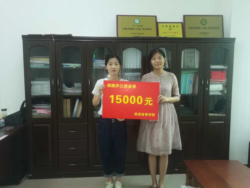 向共青团庐江县委捐款,并收到感谢锦旗