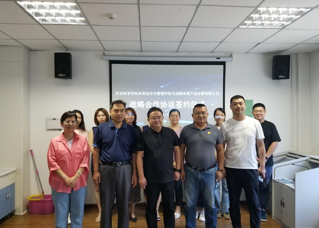 本网讯 8月31日上午,我校体育经济与管理学院与润德体育产业运营有限公司举行战略合作签约仪式。体育经济与管理学院党总支书记马迅,副院长杨涛、党挺,润德体育产业运营有限公司总经理戴立敢出席签约仪式。体育经济与管理学院各教研室主任和学生辅导员参加。签约仪式由杨涛主持。
