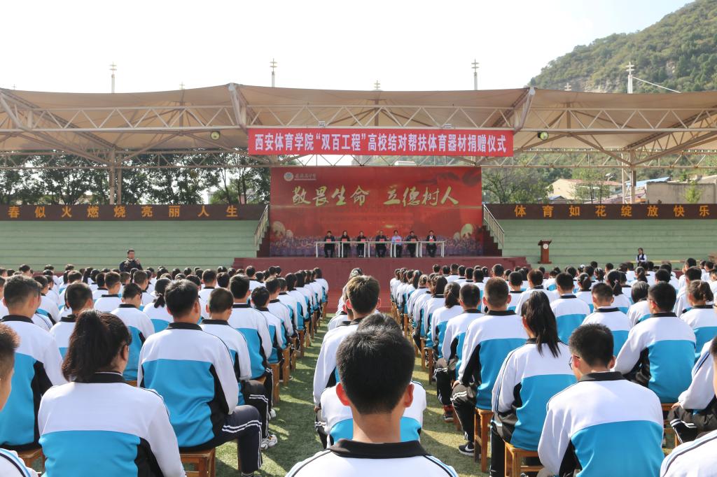 本网讯 为全方位提升“双百工程”帮扶实效,全力助推黄龙决战决胜脱贫攻坚和教育事业的快速发展,9月25日,我校与黄龙县举行“双百工程”结对帮扶体育器材捐赠仪式,黄龙县教科体局负责同志、黄龙县中学500余名师生、我校赴黄龙县支教实习的21名2017级学生参加了捐赠仪式。