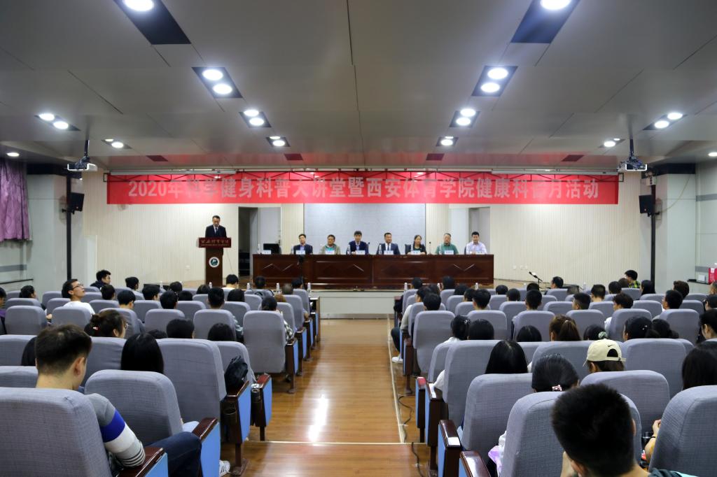 本网讯 9月28日晚,由陕西省体育科学学会和西安体育学院共同主办,运动与健康科学学院承办,科研处、宣传部、校团委协办的2020年陕西科学健身科普大讲堂系列活动暨西体大讲堂健康科普月活动在我校开幕。陕西省体育科学学会理事长、陕西省体育科学研究所长汪涛,我校副校长陈彦、谢英及学校相关部门师生300多人参加了本次活动。