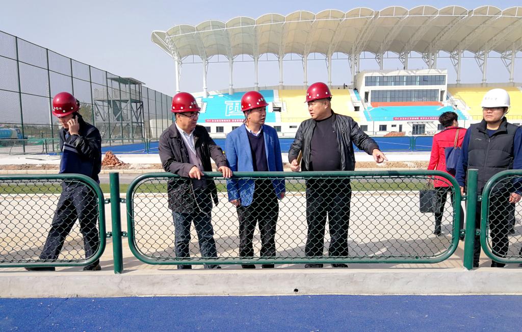 本网讯 10月21日,十四运会组委会审计监察部驻会副部长杨啸一行来到鄠邑赛区项目现场,对 “一馆四场” 第三季度项目建设进行现场督察。我校副校长李富生和基建处处长甘泽军全程陪同。