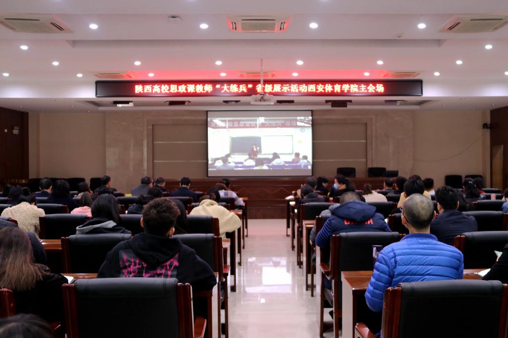 本网讯 11月12日,陕西高校思政课教师“大练兵”现场展示活动在西北大学隆重举行。我校组织师生在2号综合办公楼进行线上观摩,党委书记黄道峻、党委副书记刘子实、副校长陈彦,思政课建设领导小组成员和部分思政课教师、全体辅导员、各二级学院教师和学生代表在主会场参加了观摩活动。其他校领导与联系学院师生代表在各分会场进行网络观摩。
