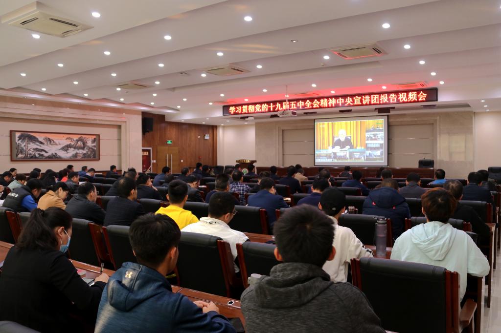 本网讯 11月12日下午,我校在二号行政楼报告厅组织收看学习贯彻党的十九届五中全会精神中央宣讲团报告视频,认真听取了中央宣传团成员、教育部党组书记、部长陈宝生同志作的宣讲报告。校党委领导班子成员、中层领导干部、师生代表共计100余人参加学习。