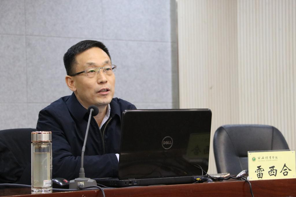 本网讯 11月25日下午,我校2020年干部教育培训第七讲在教学楼一楼报告厅举行,特邀西安石油大学党委委员、党委副书记雷西合作“新时代高校处科级干部管理服务意识与创新能力提升攻略”专题讲座。副校长李富生主持,在校的校领导、全校处科级干部及党支部书记参加。