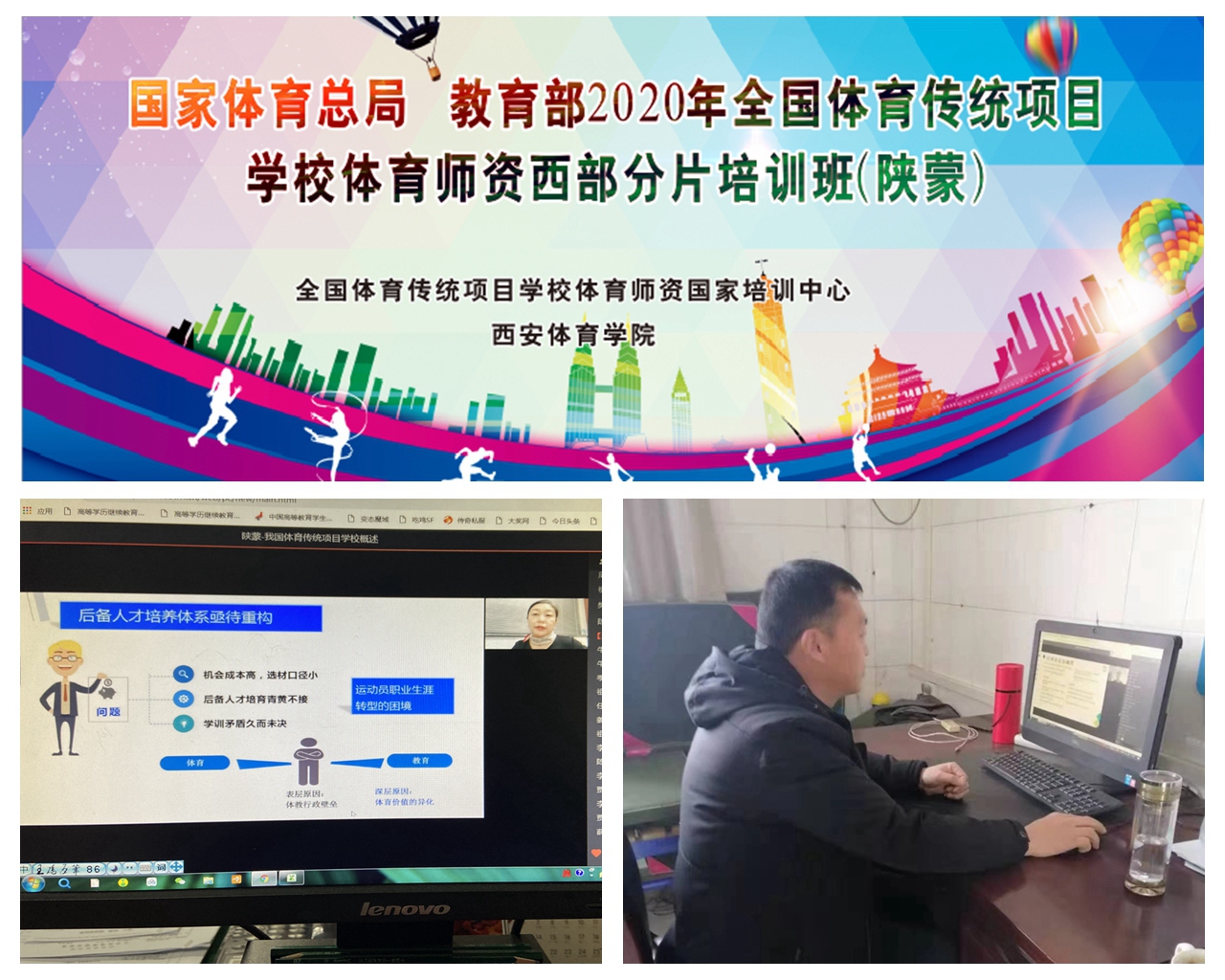 本网讯 近日,由国家体育总局主办、西安体育学院承办的2020年全国体育传统项目学校体育师资(陕蒙)线上培训班顺利结业。本次会议为期20天,共有来自陕西省和内蒙古自治区部分体育传统项目学校的256名体育教师参加了培训。我校邀请了北京体育大学、上海体育学院、人大附中等学校的21名专家学者通过网络在线直播为学员授课。
