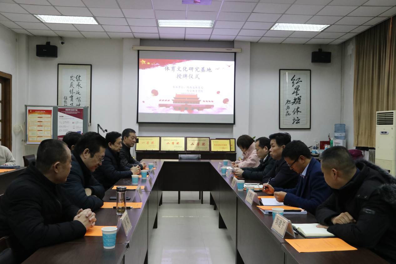 揭牌仪式上,省体育局科教处处长赵锋宣读了《陕西省体育局关于授予西安体育学院“体育文化研究基地”的通知》。随后,大家围绕、如何建设好基地、发挥基地作用进行了深入座谈交流。刘新民简要介绍了我校开展红色体育文化研究的情况。他指出,从建校以来我校就高度重视体育文化工作,以王增明、史进等教授为代表的学者长期致力于红色体育研究,取得了丰硕的成果。他表示,学校将以“体育文化研究基地”为新起点,进一步加强基地建设和管理,强化体育文化基础理论研究,提升红色体育研究水平,努力把基地打造为具有陕西特色、全国一流的高品质体育文化研究基地。