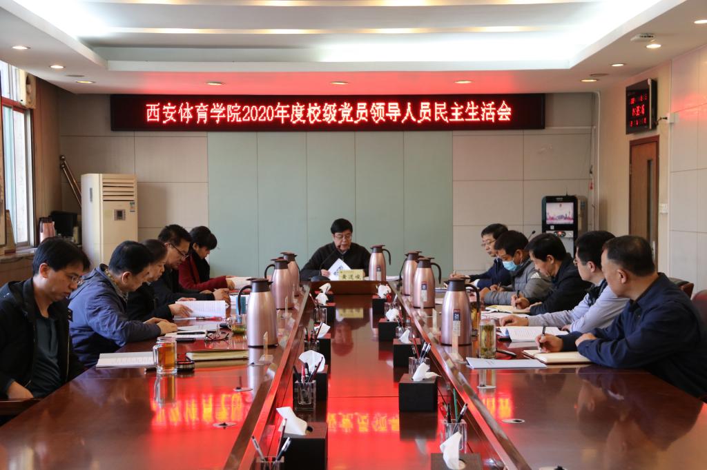 本网讯 1月13日,西安体育学院在行政楼二楼大会议室召开校级党员领导人员民主生活会,会议由校党委书记黄道峻主持,校领导班子成员及党委校长办公室、党委组织部、党委宣传部(统战部)、纪检监察机构负责人参加了会议。