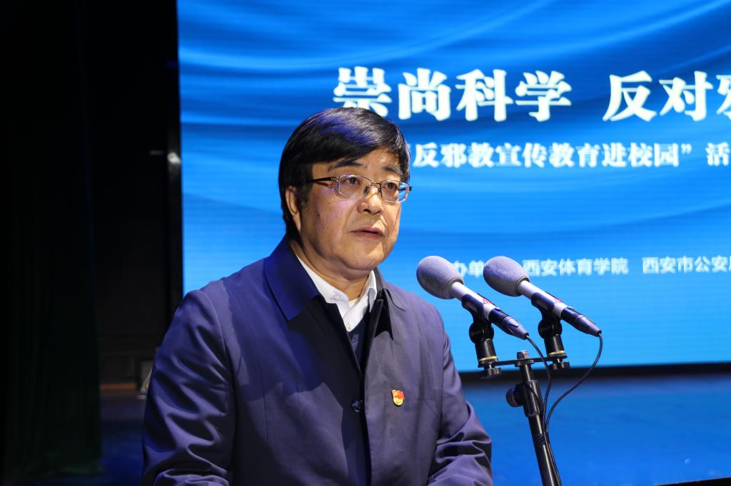 我校党委书记黄道峻在致辞中对西安市公安局来校举办“反邪教宣传教育进校园活动”,为师生带来一堂生动而深刻的反邪教宣传教育课表示了欢迎。就开展好“反邪教宣传教育进校园活动”,他提出三点意见:一是要提高思想认识,结合贯彻落实党的十九大、全国教育大会会议精神,在党史学习教育中,汲取信仰、信念、信心的力量,始终保持清醒头脑和高度警觉,严密防范邪教向校园渗透。二是要强化宣传教育,做好反邪教警示教育“进教材、进课堂、进头脑”工作,常态化开展对师生的反邪教警示教育,不断提升广大师生识别邪教、防范邪教、拒绝邪教、反对邪教的意识。三是要做到齐抓共管,健全育人体系,建立党委牵头抓总,各职能部门、二级学院深入实施,各年级、各辅导员摸排管控,全体师生自觉防邪拒邪的教育、排查、预警和处置工作机制,特别是要严格校园安全管理,加强校园网络监管,阻断邪教向校园网络渗透的渠道。