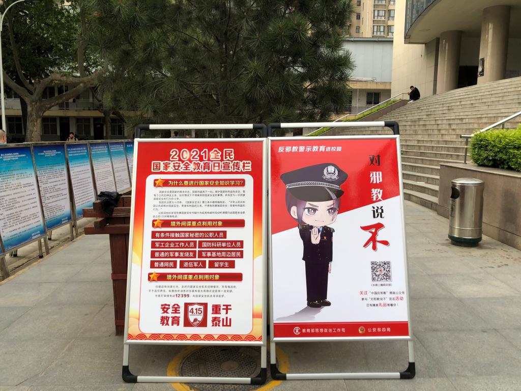 此外,为做好国家安全日和反邪教宣传教育,我校在行政楼、教学楼、田径馆、艺术馆等地,利用LED屏、宣传展板、易拉宝等形式,积极开展宣传教育。
