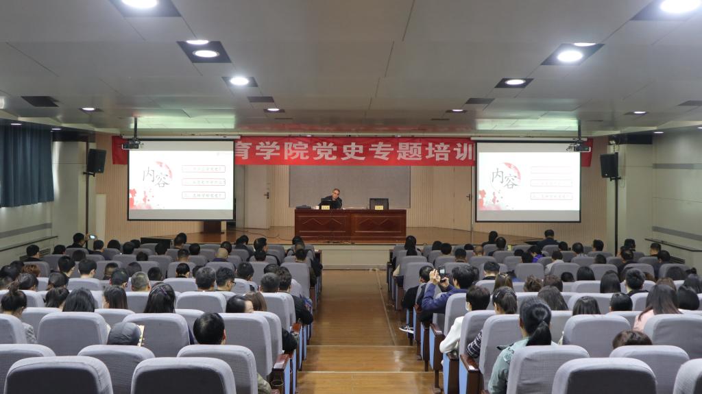 本网讯 4月14日下午,我校党史学习教育专题培训在教学楼一楼报告厅举行,西安交通大学马克思主义学院马克思主义原理研究所所长李永胜教授作“党史学习:为什么学、学什么、怎样学”专题讲座。党委副书记文立新主持,全校处科级干部及党支部书记,机关、后勤部门全体党员参加。