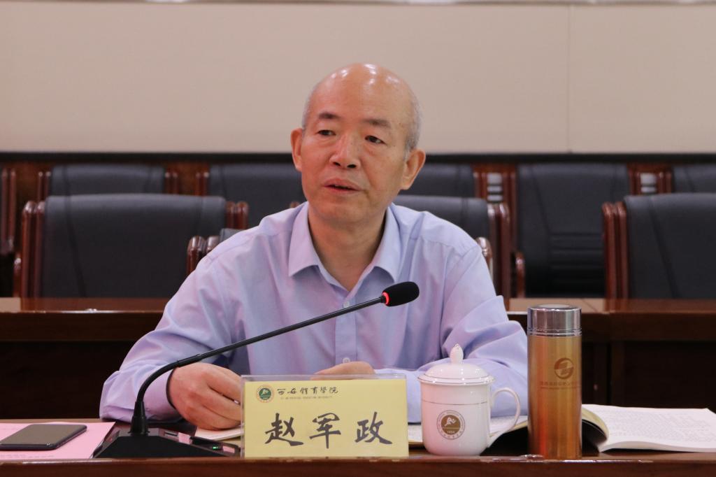 在听取学校工作汇报之后,赵军政同志对我校党史学习教育开展情况给予高度评价,并从“重视、得当、多样”三方面做了详细点评,他指出:党史学习教育开展以来,西安体育学院工作开展扎实,专题学习深入,方向正确、内容完整、形式多样、成效显著,展现了学校特色,并做好下一阶段党史学习教育,他提出四点意见:一是要“用心”,在“明理”上用心,用心领悟习近平新时代中国特色社会主义思想的丰富内涵,深刻领会习近平总书记关于教育的重要论述和指示批示精神,用心感悟,传道授业解惑。二是要“用力”,在“增信”上用力,引导广大党员干部师生不断增强对中国特色社会主义的坚定信念。三是要“用情”,在“崇德”上用情,坚持立德树人根本任务不动摇,把“为党育人、为国育才”镶嵌在党员干部和教师的内心深处,为党和国家培养时代新人。四是要“用劲”,在各自的本职工作上用劲,担当作为、学以致用,将党史学习教育成果转化为推动教育事业发展的强大动力。