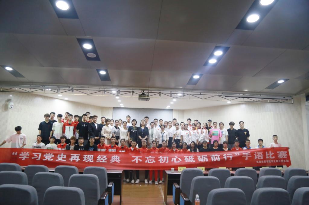 5月19日,体育教育学院学生第五党支部在教学楼一楼报告厅开展“学习党史再现经典,不忘初心砥砺前行”手语比赛。体育教育学院党委副书记李倩,学生第五党支部书记耿莉,教研室老师和专业辅导员参加活动。本次活动将革命歌曲、毛主席诗词通过手语形式呈现,激发了同学们的学习热情,在前期准备过程中,通过了解革命歌曲,毛主席诗词的背景,加深了同学们对党的光辉历程的了解,更加深刻认识到,党的百年奋斗史就是党为人民谋幸福的历史,只有中国共产党才能带领中国人民走向一个又一个胜利,带领中华民族走向复兴。