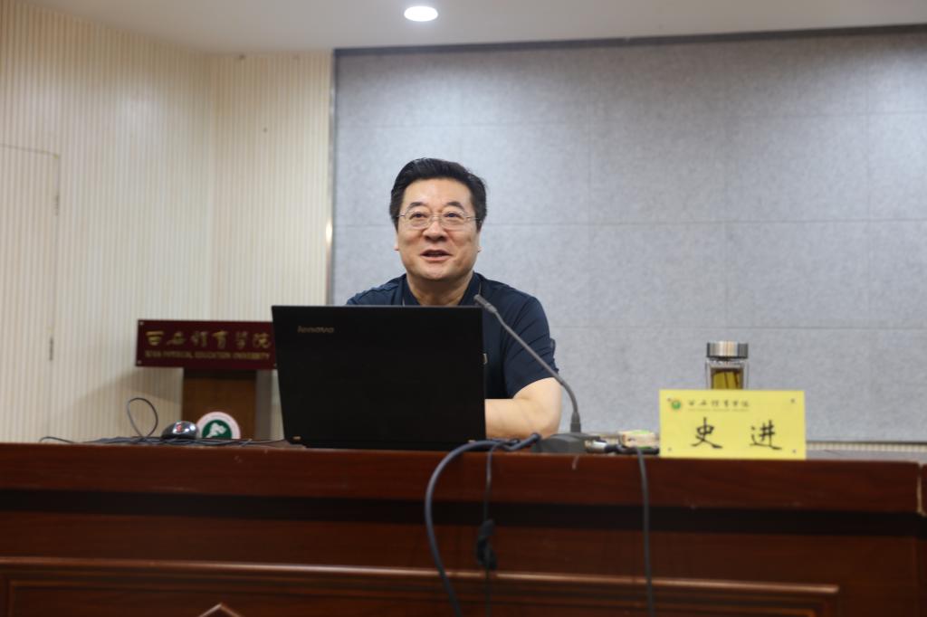本网讯 5月26日下午,我校领导干部党史学习教育专题讲座第四讲在教学楼一楼报告厅举行,图书馆馆长史进教授作“中国红色体育百年历程、思想演进及其当代价值”专题讲座。会议由党委组织部部长何佰虎主持,全校处科级干部及党支部书记参加。