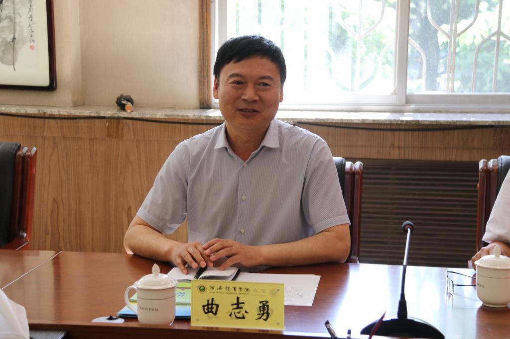 曲志勇对我校的热情接待和精心准备表示感谢,他从以大赛引领、促进教学改革,确立“双百”人才计划,项目拉动学校条件改善三个方面简要介绍了渭南技师学院的校园建设和办学情况。他谈到,我校为渭南技师学院输送了大量优秀的高质量体育人才,为学校和渭南市体育事业的发展注入了新鲜血液。此次前来是为了向兄弟院校交流学习办学经验,解决当前学校存在的历史遗留问题,希望今后能加强与我校的交流合作,互鉴互学、共同提高、共同发展。