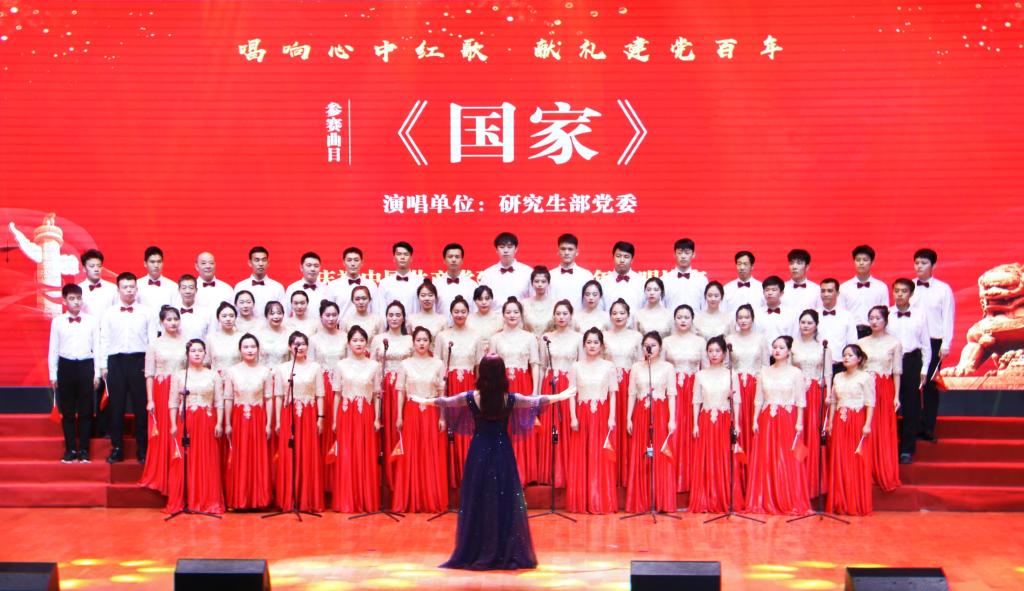 研究生部党委为党献唱《国家》、《歌唱祖国》两首曲目,凝结爱国声、人民心、民族魂。