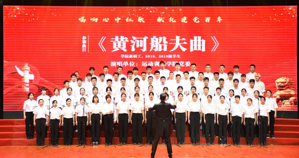 运动训练学院党委合唱团的师生,以一首慷慨激昂的《黄河船夫曲》压轴,高亢的歌声、磅礴的气势展现出陕北人民不屈不挠的革命乐观风貌。