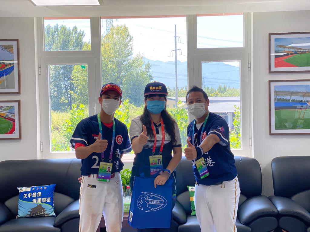 9月9日中午,香港队1:9负于东道主陕西队,自此香港队所有比赛全部完成,在离别之际,棒球项目竞赛委会在棒球场贵宾室为香港代表队举行送别交流会。执行主任赵军、李化分别向香港代表队赠送陕西文化特产—《户县农民画》,执行主任陈旭向香港代表队赠送十四运参赛纪念牌,香港队向竞委会回赠纪念品。香港队队长陈卓乔为了参加本届比赛辞掉工作、义不容辞投身比赛,对本届赛事的竞赛组织和保障服务给予高度赞许。香港队领队、香港棒球协会主席何迪夫说到,按照防疫要求,全队在深圳经历21天的隔离之后乘飞机到达西安机场并入住全运村,一路上感受到了满满的爱,各部门都给我们提供了很多的帮助,一路走来看到了祖国的强大和繁荣昌盛,期待4年后在粤港澳大湾区再相聚。