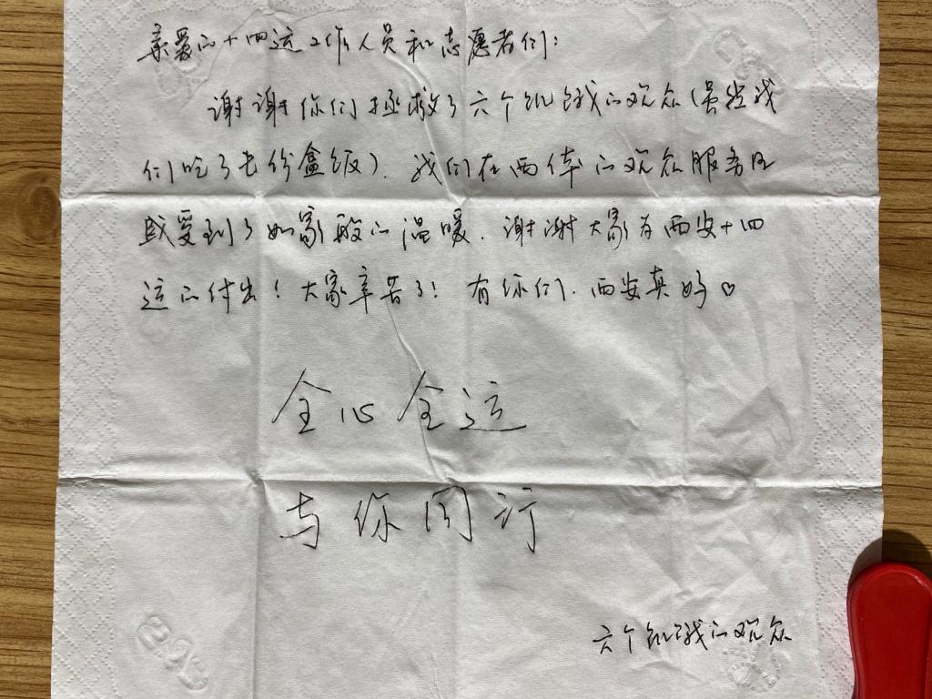 现场观众写给志愿者的感谢信