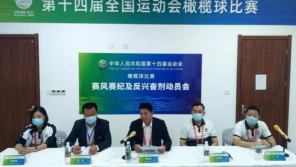 本网讯 9月14日上午,第十四届全运会橄榄球项目赛风赛纪和反兴奋剂动员会在我校鄠邑校区橄榄球场会议室召开,国家体育总局小球运动管理中心主任、党委书记、中国橄榄球协会主席、十四运橄榄球竞委会执行主任陈应表,中国橄榄球协会代理秘书长张春权,西安体育学院副校长、橄榄球项目竞委会执行主任陈彦,国家体育总局小球运动管理中心竞训部部长于晗、橄榄球项目兴奋剂检测官邱晓霞出席会议,来自全国各代表队的领队、教练员和运动员和裁判员代表参加了会议。