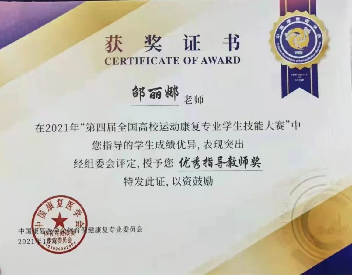 我校派出了运动与健康科学学院2018级康复治疗学专业杜雅琪、杨凝、杨一铭三名学生组成的代表队参赛,通过理论综合考试和三轮康复技能操作考核,经过激烈的角逐和评审,最终我校荣获第四届全国高校运动康复专业学生技能大赛三等奖,翟俊娜、邵丽娜、刘勇三位指导老师荣获优秀指导奖。