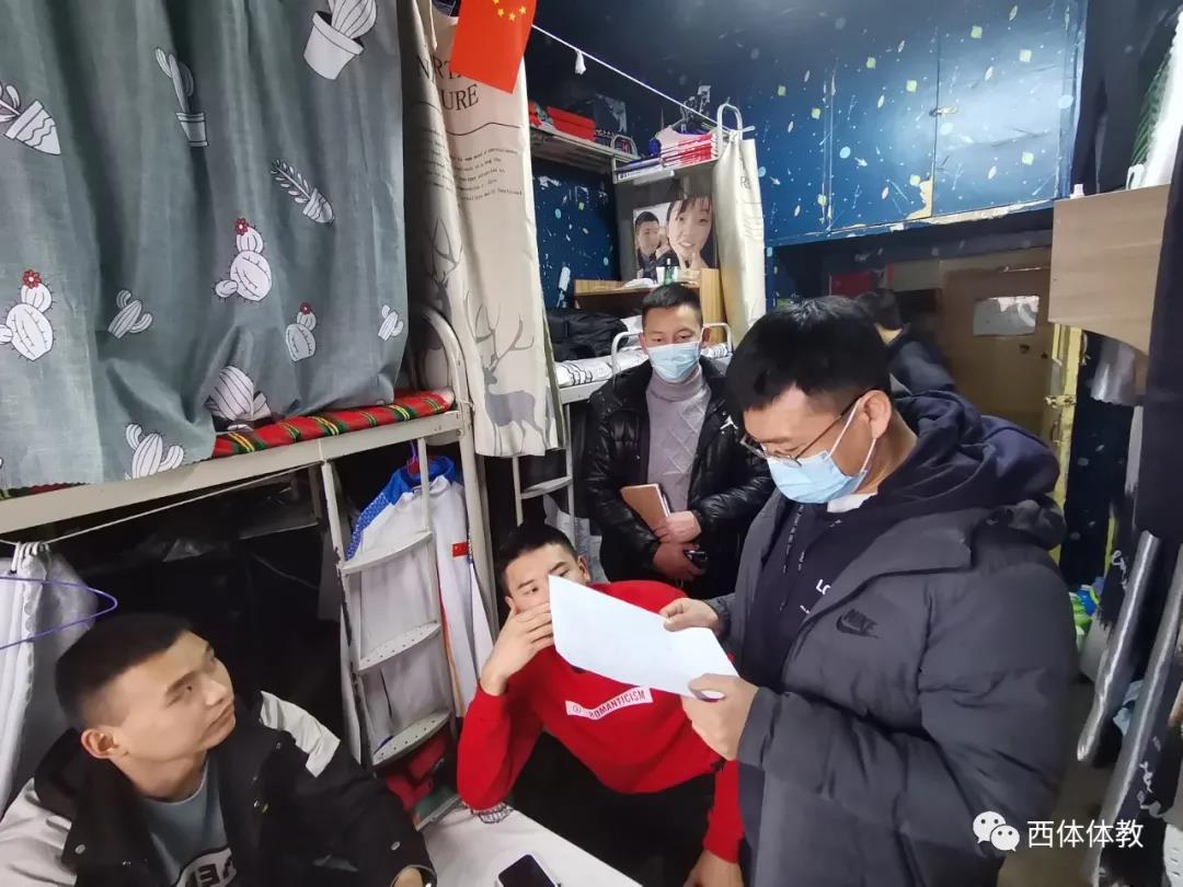 本网讯 随着西安市疫情的发展,防控工作目前到了关键时刻,学校实行校园封闭管理,面对严峻的新冠疫情形势,体育教育学院坚持党建引领,强化政治担当,把疫情防控当作头等大事,压实党委主体责任,充分发挥基层党组织战斗堡垒和党员干部先锋模范作用,始终胸怀着为人民服务的初心,关心关爱师生的生活,着力为师生解决实际困难,全力以赴做好疫情防控工作。