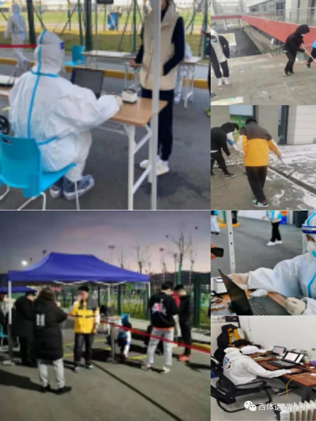 2020级李相达、吴佳晨、侯敬轩、张梦奇四名同学志愿帮助鄠邑校区管委会,协助校区进行核酸检测、场地布置、物资转运、防疫宣传并维持现场秩序等,高效分担了校区管委会的防疫工作压力,也展现出青年人抗击疫情的决心和奉献精神。