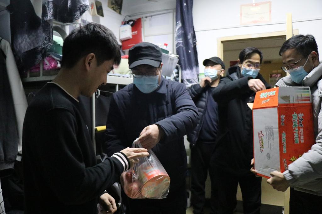 本网讯 新年来临之际,为进一步深入了解管控期间学生思想动态和学习生活实际,党委书记黄道峻、校长刘子实等领导班子成员深入学生公寓检查疫情防控工作情况,并向他们送去了慰问品。