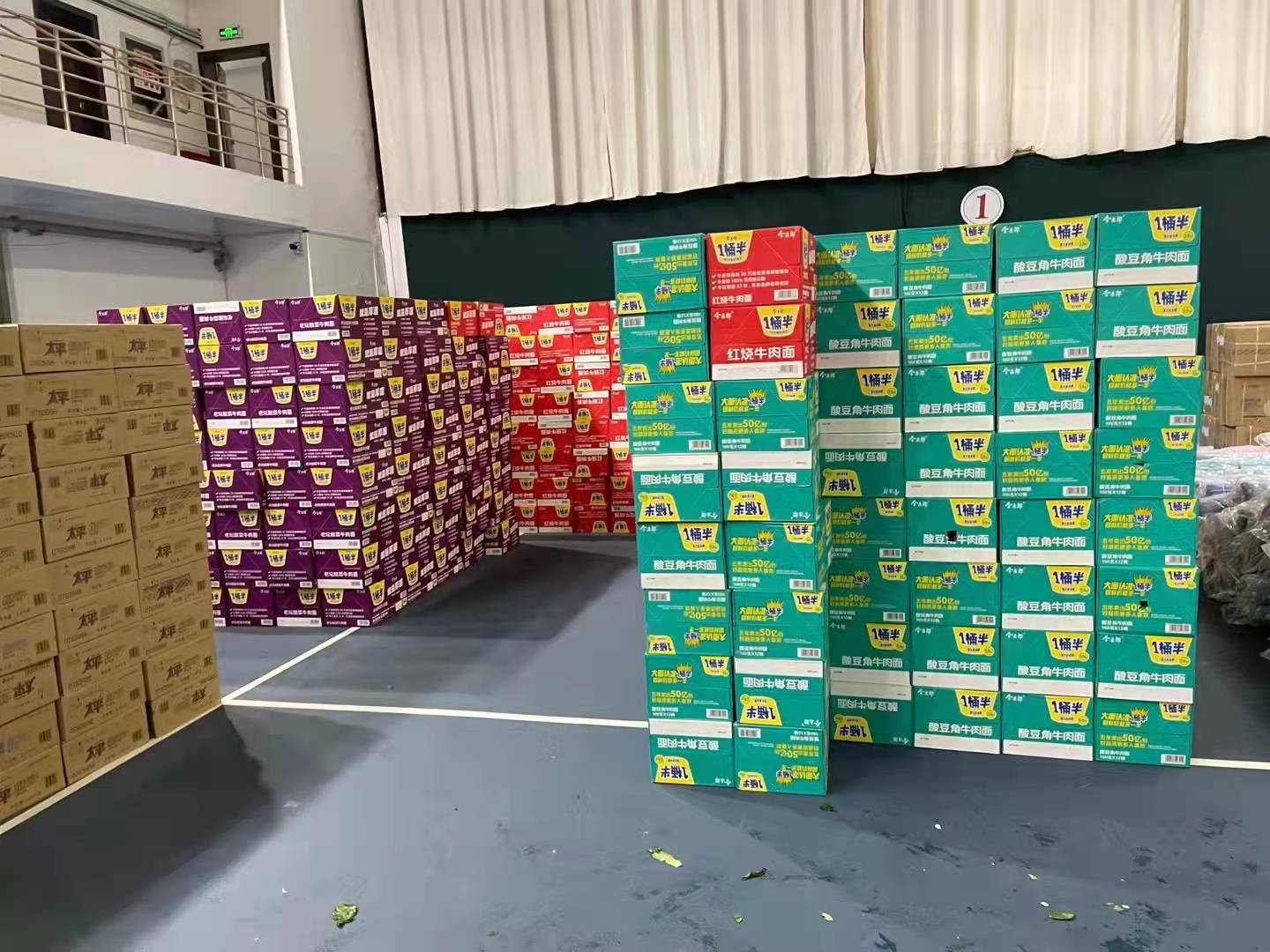 ✮1月5日,校园内的快递、水果店联合为学校捐赠了3000斤白菜、1500斤土豆等价值近万元的蔬菜,小杨超市、嘉云超市为学校捐赠方便面、面包、饼干、饮用水、口罩等共计121箱生活物资,现场后勤接收工作人员对店铺表示了感谢,并给予了高度评价。