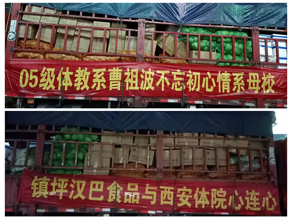 ✮1月4日,在镇坪县委常委、统战部部长李俊,镇坪县工商联党组书记陈正平的关心支持下,创业不久的我校体育教育学院2009届毕业生、镇坪县汉巴食品有限公司总经理曹祖波,带领员工连续奋战四个日夜,紧急为母校筹集调运捐赠了1000斤腊肉、850只腊鸡、480包腊肉干、4吨土豆等价值十万元的肉菜,后又得知家属区买菜不便,曹祖波又赶往安康采购蔬菜、葱姜蒜等生活物资,将满载着对母校关爱与祝福的抗疫物资送上西康高速。那一刻,曹祖波满怀欣喜,他说:“毕业多年,我始终不曾忘记母校的培养,这是我第一次用行动回馈母校,希望校园平安,早日抗疫成功”。