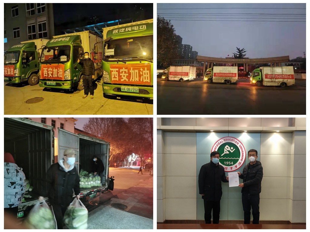 ✮2021年12月29日,一条“武汉鑫阿丹园光谷国际酒店向西安体育学院捐赠物资”的视频新闻刷爆了每一位西体师生的朋友圈,捐赠车上“西安加油”的字样不仅让此刻每一位身处疫情之中的师生倍感温暖,39290斤蔬菜更为封闭管理下物资紧缺的学校解决了燃眉之急。