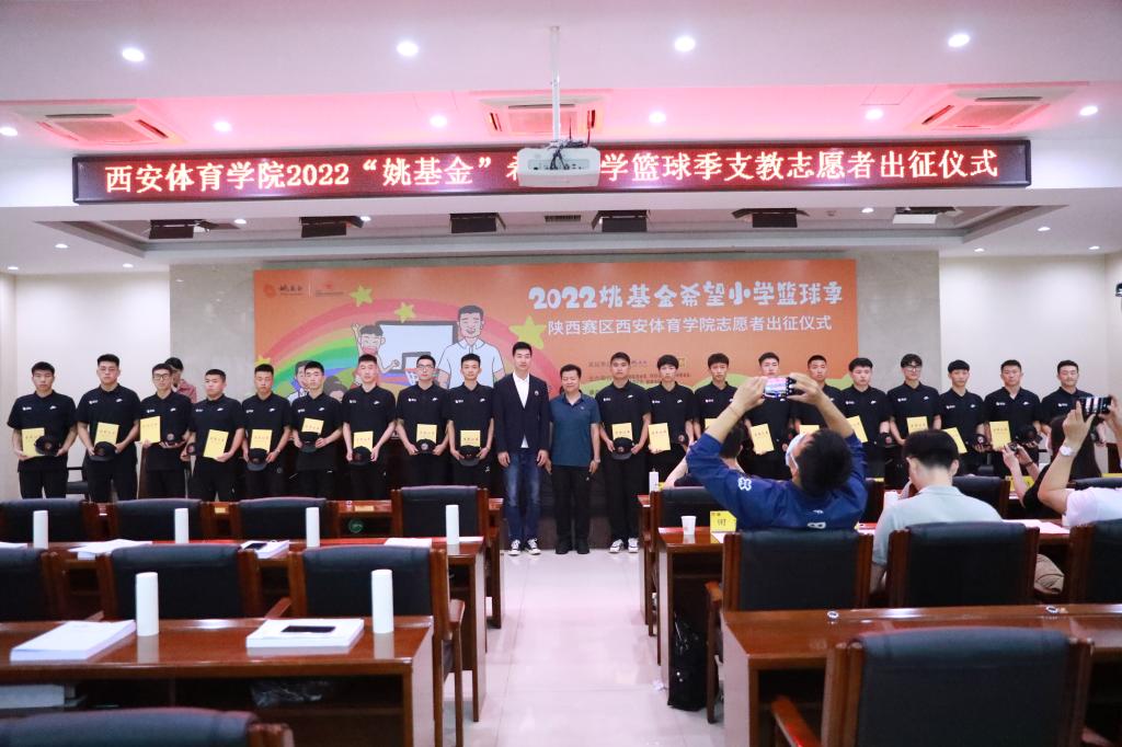 本网讯 5月23日上午,我校2022年“姚基金希望小学篮球季”支教志愿者出征仪式在二号行政楼六楼报告厅举行,陕西省希望办公室主任、省青少年发展基金会秘书长乌钢,陕西省篮协秘书长杜旭,陕西省青少年发展基金会副秘书长常江,校党委委员、党委宣传部部长张朝阳及相关职能部门负责人、二级学院党委书记、二级学院团委书记、全体志愿者、在校生代表参加了出征仪式。校团委综合部副部长雷云主持出征仪式。