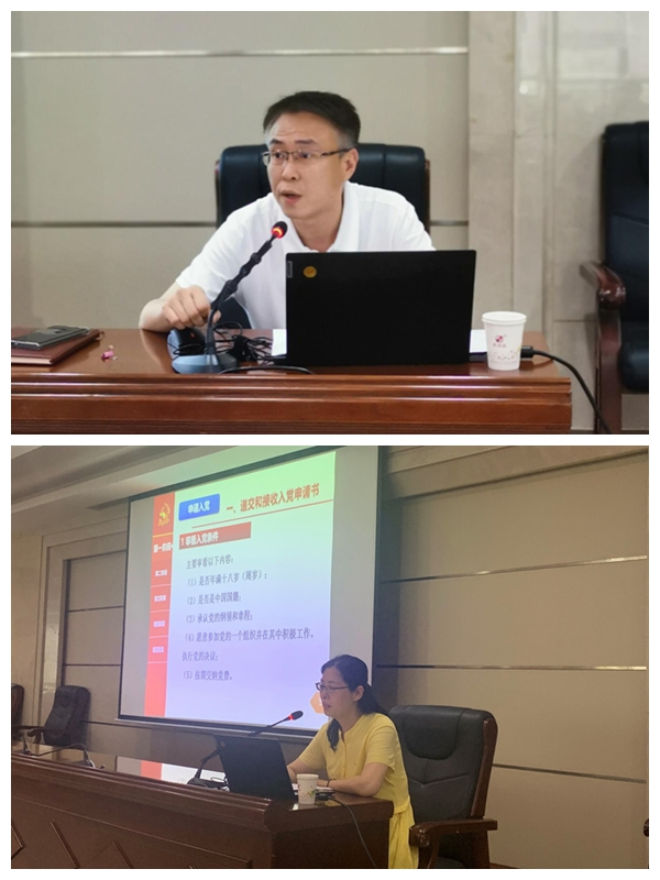 培训会分为两个专题,机关党委书记卢喆围绕基层党建日常工作,从支部“三会一课”、主题党日、组织生活会等各项会议的制度及记录要求开展培训,使参加培训人员进一步了解和把握党务工作的程序和要求,切实增加做好党组织工作的能力和水平,为做好党建工作打下坚实的基础。党委组织部副部长李志杰对发展党员的步骤流程以及党员材料的填写规范进行了培训,各支部书记对发展党员工作的程序及要求有了更清晰的认识,深刻认识到入党过程中的每一步都至关重要。