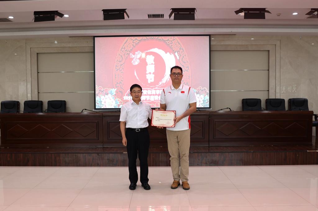 副校长刘新民为获得西安体育学院教学名师称号的张彩红、穆晓、温晓妮、严峰和获得西安体育学院优秀青年教师称号的于善、马菊霞、杜新星、李川、于美至、王晓艳、于巴锁、丁建岚、杨辉、胡婕婷、刘伟校颁发荣誉证书。