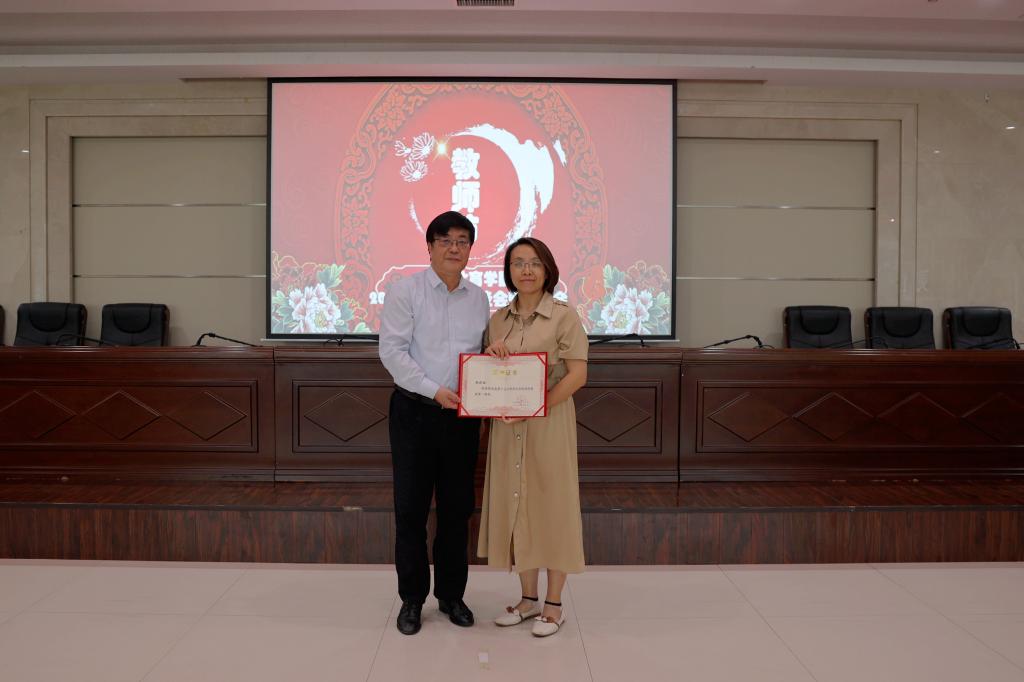 党委书记黄道峻宣读了表彰通报,并为获得陕西省哲学社会科学优秀成果一等奖的教师张晓丽颁发荣誉证书。