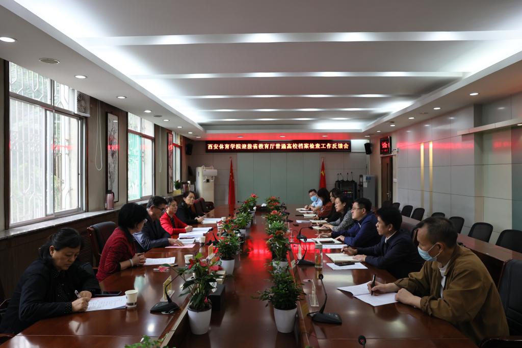 反馈会上,西安交通大学档案馆副馆长石慧敏代表检查组对我校的档案工作给予充分的肯定,认为我校高度重视档案工作,档案门类齐全合理,档案制度管理规范,数字化信息化经费有保障,能贯彻好档案集中统一管理和部门立卷的刚性原则,新冠疫情、十四运、党史学习教育等专项归档及时完整、突出学校特色,实现多渠道多形式开展档案查询工作,档案信息挖掘有力度、深度,红色体育研究成果显著,未出现违反档案工作法律法规情况。同时检查组还给出了以下建议:一是希望学校各级领导进一步学习习近平总书记对档案工作的重要批示精神,加强党对档案工作的领导,提高全员档案归档意识;二是进一步宣传学习贯彻新修订的《档案法》,提高信息化、数字化管理水平,尽快实现与学校OA系统对接归档管理;三是加强档案工作人员配备,加强档案工作人员业务培训和省内省外学术交流,提高档案利用研究和实践管理水平。