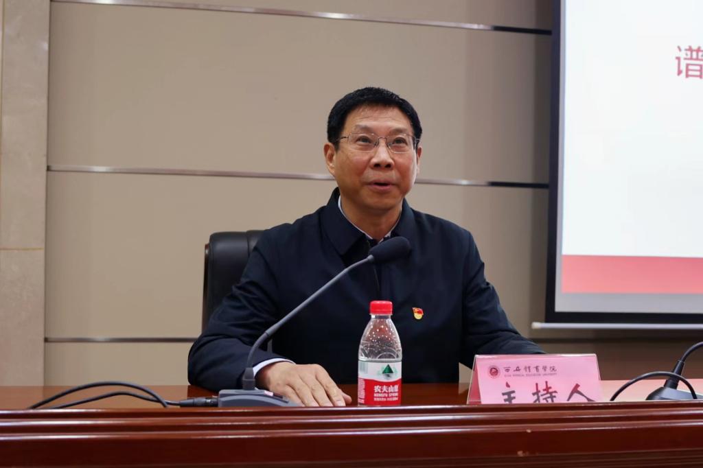本网讯 为深入学习宣传贯彻党的二十大精神,11月11日下午我校在二号行政楼报告厅举办党的二十大精神宣讲会。党委副书记文立新出席并主持,马克思主义学院院长秋实主讲。全体思政课教师、学工部干部、辅导员、各二级党组织、直属党支部书记参与会议,其他师生通过线上聆听学习。