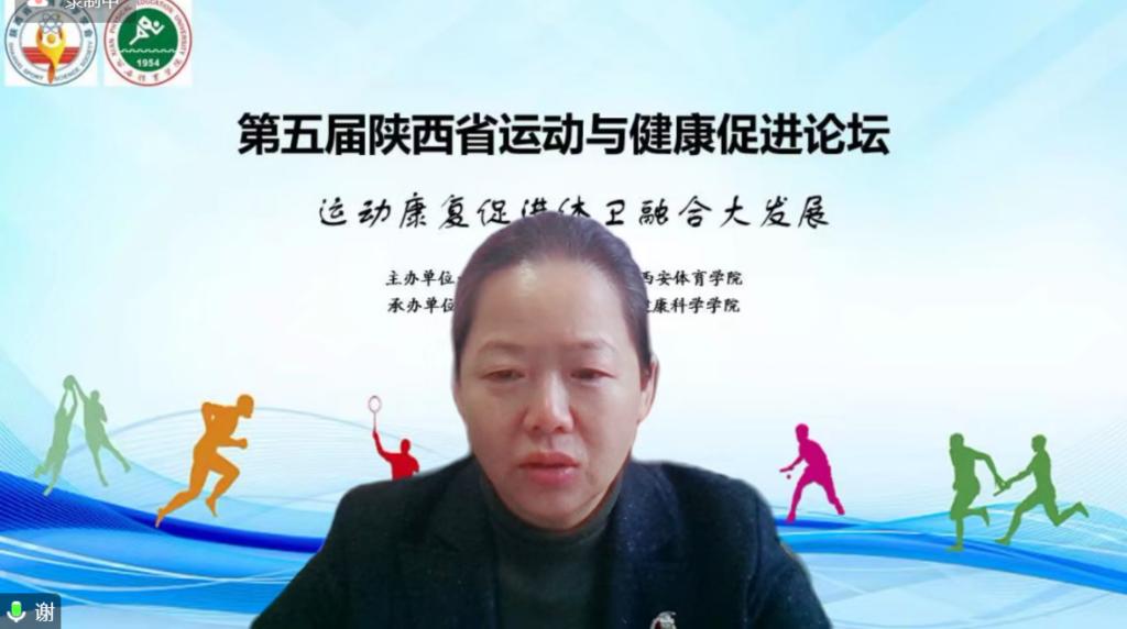 本网讯 在建设体育强国和健康中国的大背景下,为推动我省体育事业高质量发展,助力健康陕西建设,近日,第五届陕西省运动与健康促进论坛在线上成功举办。我校副校长谢英、陕西省体育科学研究所所长高治国、陕西省体育科学学会秘书长赵升、教务处处长张葆欣以及运动与健康科学学院党委书记刘勇、院长刘涛等出席会议。来自陕西师范大学、陕西省康复医院、空军军医大学西京医院、陕西省人民医院、西安市红会医院、陕西中医药大学、陕西省体科所、西安体育学院的11名专家从不同方面、围绕本次会议主题“运动康复促进体卫融合大发展”做了精彩的报告。本次论坛由陕西省体育科学学会和西安体育学院主办,我校运动与健康科学学院承办。