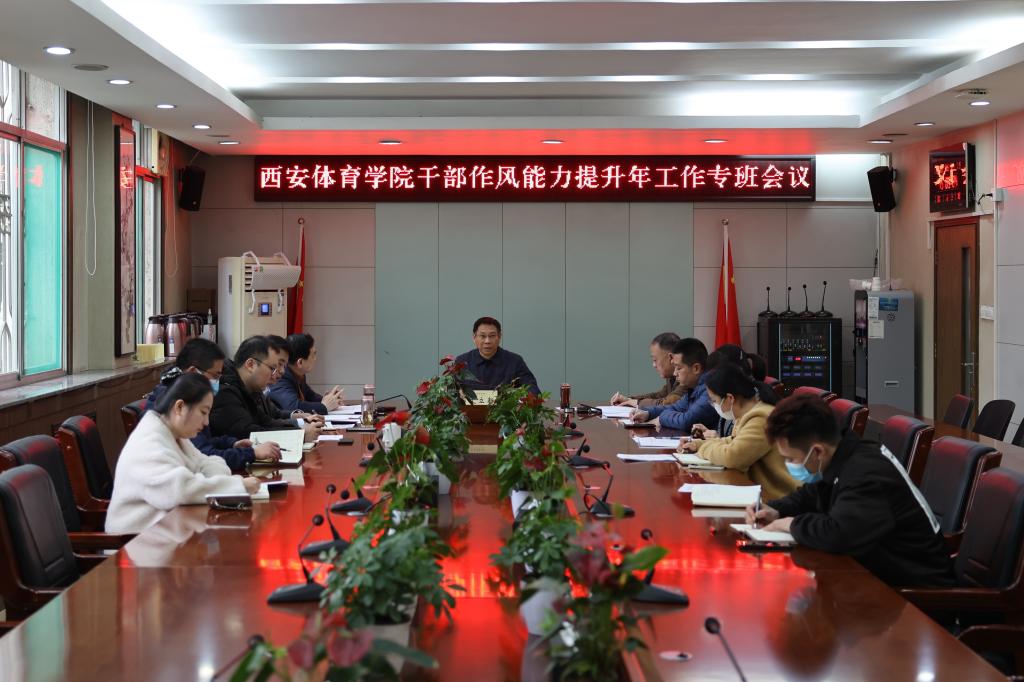 党委副书记文立新宣读了《西安体育学院干部作风能力提升年实施方案》,对干部作风能力提升年的总体要求、工作目标、重点任务、组织保障、领导小组及工作职责进行了明确和安排部署。他表示,今年是陕西省高质量项目推进年、营商环境突破年、作风能力提升年,也是学校确立的学科建设年,各级干部要紧扣学校中心工作、重点任务、重大项目,紧盯师生急难愁盼问题,以作风能力提升作为事业发展的保障,做好融会贯通,找准发力点,促进本领提升,激发担当作为,务求高标准、有特色、见实效,推动学校实现高质量跨越式发展。