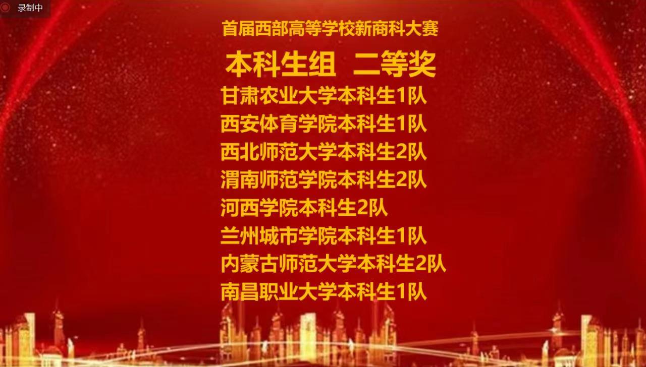 本网讯 2023年4月8日,首届西部高等学校新商科大赛以线上形式举办。本届大赛由西部新商科实践教学创新与共享联盟主办,兰州大学承办,教育部工商管理教育指导委员会指导。我校体育经济与管理学院派出的参赛队伍在杨涛教授和田蜜副教授的指导下,获得本科组二等奖。