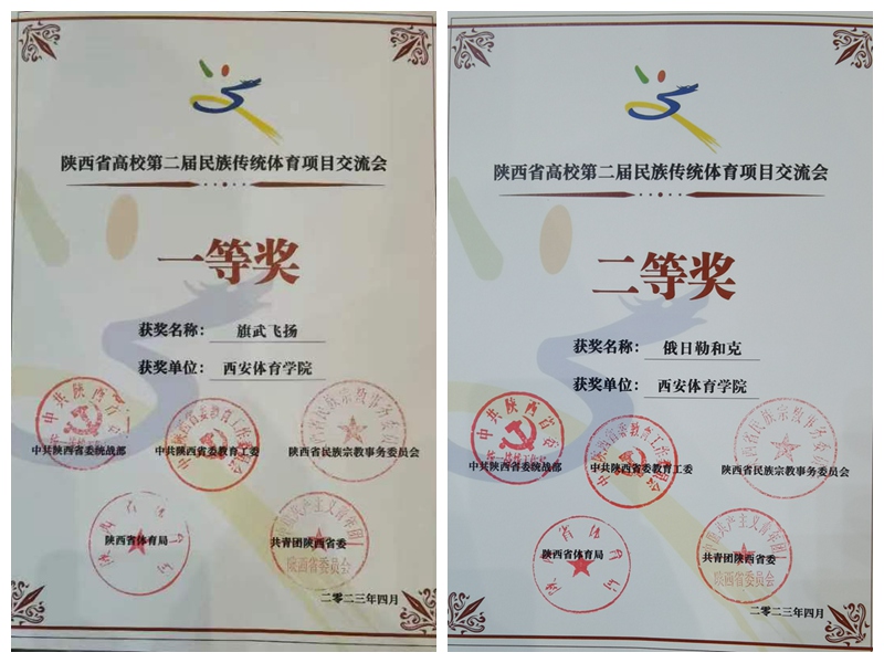 本网讯   2023年4月22日上午,由中共陕西省委统战部、中共陕西省委教育工委、陕西省民族宗教事务委员会、陕西省体育局、共青团陕西省委联合主办,西安交通大学承办的陕西省高校第二届民族传统体育项目交流会隆重举行。本次交流会上,我校推荐的武术《旗舞飞扬》获一等奖,中国民族民间舞《俄日勒和克》获二等奖并进行了现场交流展示。