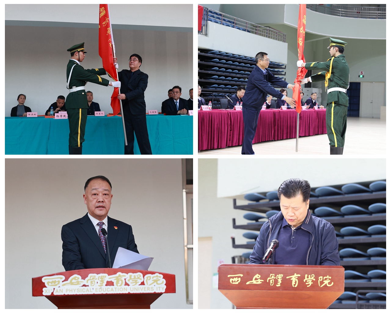 大会开始,党委宣传部部长张朝阳、学工部部长王志刚分别宣读了军训纪律。党委书记黄道峻、党委副书记文立新分别为校本部和鄠邑校区军训团授旗。