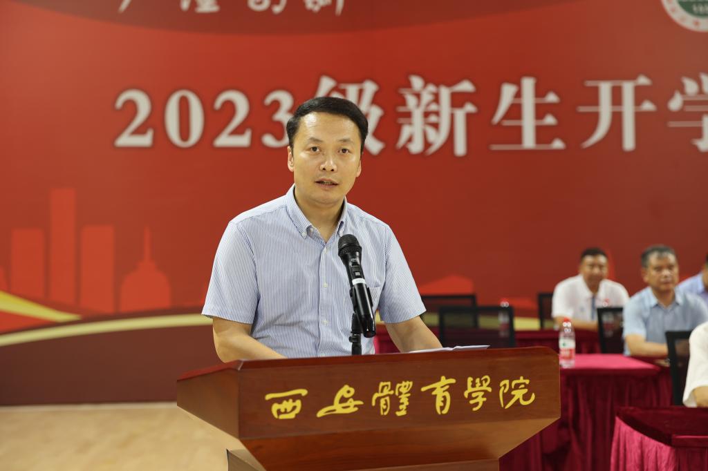 校长刘子实代表学校对2023级同学们加入西体大家庭表示热烈欢迎,向辛勤培育同学们的父母师长表示衷心感谢,向承担本次军训任务的全体教官致以崇高敬意。他以《勤学实干明德 书写无悔青春》为题,为新生送上真挚的致辞。他从“大学是什么?”“西体是一所什么样的大学?”“西体能给大家带来什么?”“如何度过在西体的大学时光?”四个话题发问,并分享了自己的思考。从典籍里的“大学”为题,向同学们介绍了西体的历史传承和深厚底蕴。他表示,在西体不仅可以收获扎实的知识与技能,还能注入积极向上的力量,更能磨炼强健的体魄和坚强的意志。第一,为学之道贵在勤奋。要转变思维,变“被动学习”为“主动探索”。珍惜大学生活,规划好学习目标和计划,追求真理、探索新知,成为能够担当民族复兴大任的栋梁之才。第二,为事之道贵在实干。要知行合一,知识学习和能力锻炼并重。要利用好学校的优质资源,“厚基础、宽口径、严要求、重实践”,争做一专多能的应用型、创新型、复合型人才。第三,为人之道贵在德行。希望同学们明大德,涵养家国情怀,把小我融入党和祖国的大我,与时代同步伐、与人民共命运,不断升华人生境界;坚守中华民族传统美德,遵守法律法规,弘扬公平公正、自信自强的体育精神。最后他希望同学们在军训期间不怕苦、不怕累,严格遵守纪律,一切行动听指挥,秉承“严谨 创新 团结 拼搏”的校训精神,用勤学铸就本领力量、用实干历练成长成才、用明德把准人生航向,在西体这片沃土绽放青春奋斗的绚丽之花!