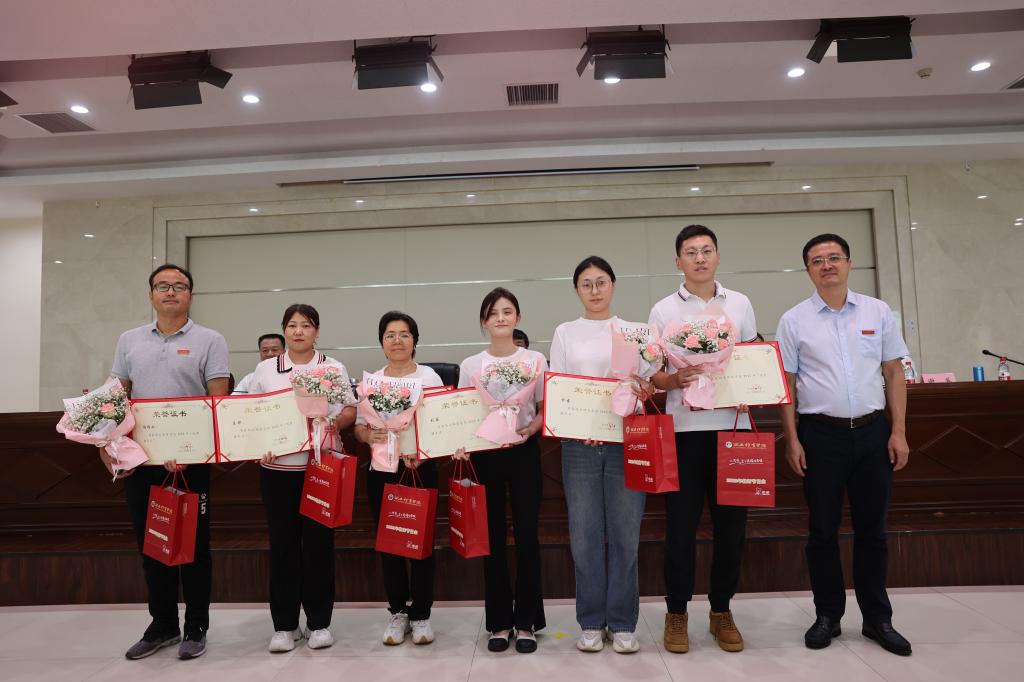 党委副书记、纪委书记、监察专员杨芳乾分别给荣获2022年“省级优秀教材二等奖”匡小红、魏娟丽、王秋茸;荣获2022年“省级优秀教材二等奖”(本科教育)张蕊、时倩;获批国家级、省部级研究基地苟波团队、潘玮敏团队、刘涛团队、柴王军团队颁奖。