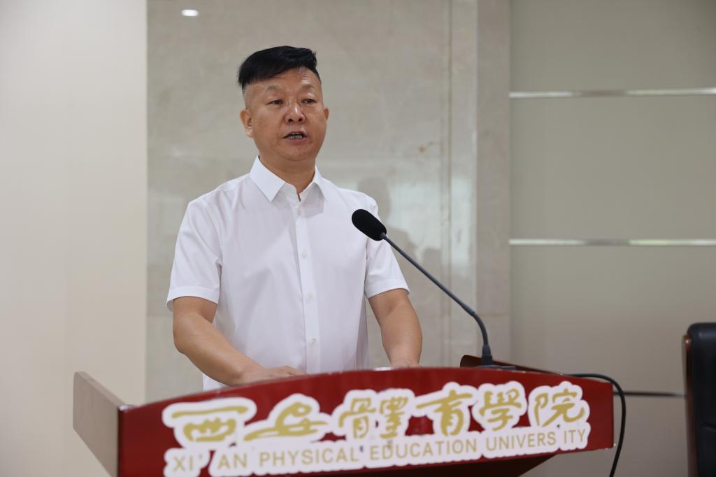 党委副书记高玉峰分别给荣获2022年体育运动一级奖章教练员蒋秋艳;荣获2022年全国田径投掷项群赛男子铅球冠军陈剑荣获2023陕西大学生足球联赛一级联赛(超级组)优秀教练员张雁飞;荣获2023年杭州亚运会撑竿跳高项目参赛资格牛春格;荣获陕西省第八届少数民族传统体育运动会优秀组织奖朱海楠颁奖。