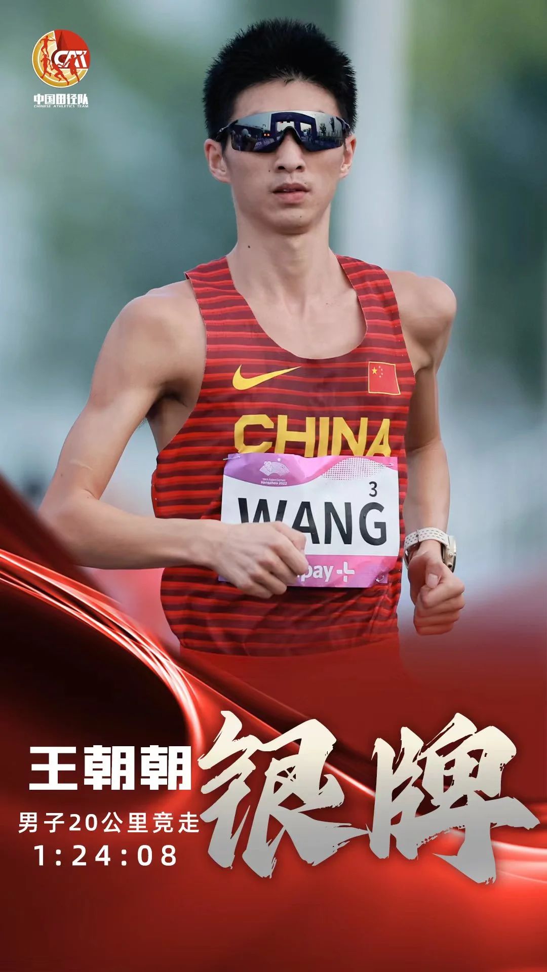 在9月29日举行的男子20公里竞走决赛中以1:24:08的成绩获得亚军